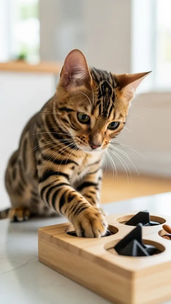 A Bengal’s sharp mind thrives on problem-solving. Puzzle feeders that release kibble or treats as they manipulate elements keep meals engaging and mentally fulfilling.