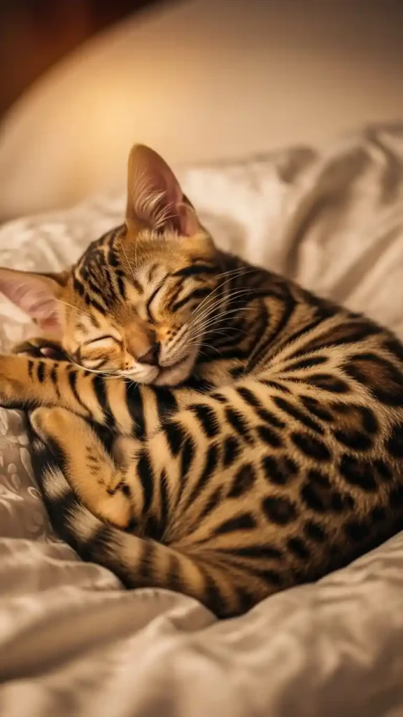 Even the liveliest Bengal kitties need restful downtimes. Provide soft beds, window perches, and quiet retreats where they can curl up and recharge between play sessions.