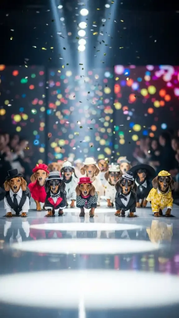 This fashionable setup transforms dachshunds into true style icons. It’s a playful and glamorous concept that celebrates creativity and makes dog lovers smile instantly.