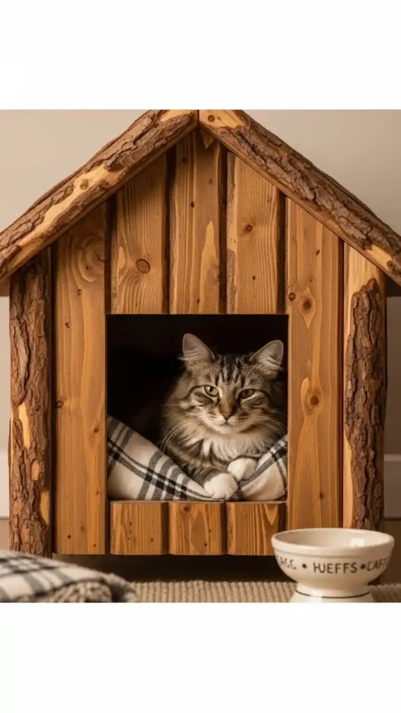 🚪 3. Wooden Cat Cabin — Rustic Charm Meets Durability