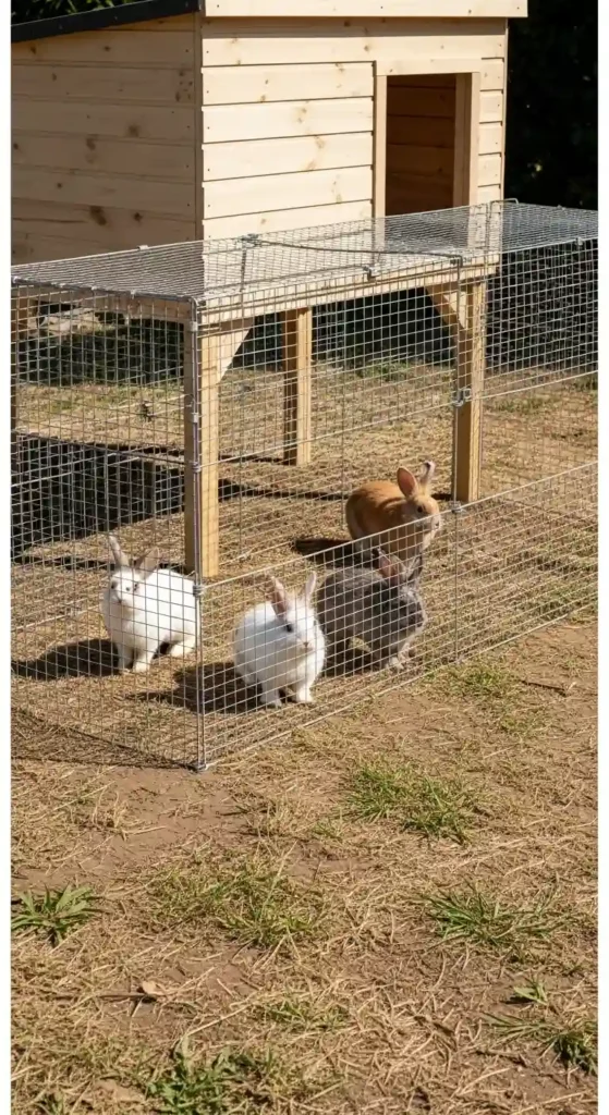 Adding a covered exercise section allows rabbits to move freely while staying protected from rain and sun.