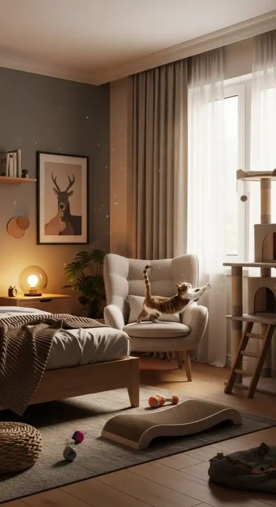 Sharing your bedroom with a cat means balancing comfort, style, and feline-friendly design. Cats love warmth, soft textures, and vertical spaces—so a cozy bedroom can be both beautiful and practical for you and your furry companion.
