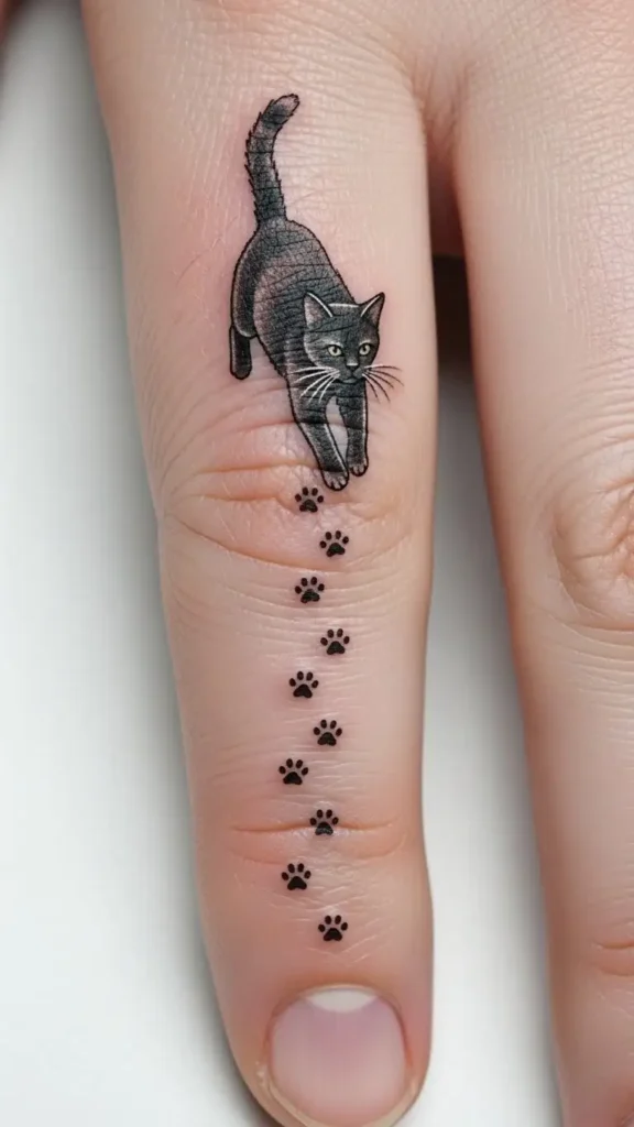 Placed on the wrist, collarbone, or behind the ear, this design symbolizes affection and passion for cats. The simplicity ensures quick tattooing with minimal pain.