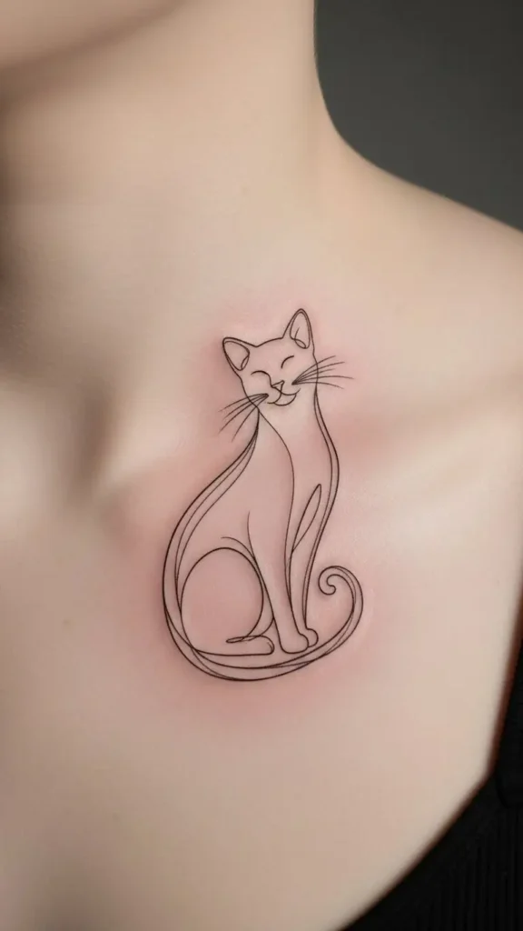 Despite its simplicity, it carries a strong aesthetic appeal. Minimalist cat tattoos are subtle, stylish, and suitable for first-timers who want meaningful body art without committing to large designs.