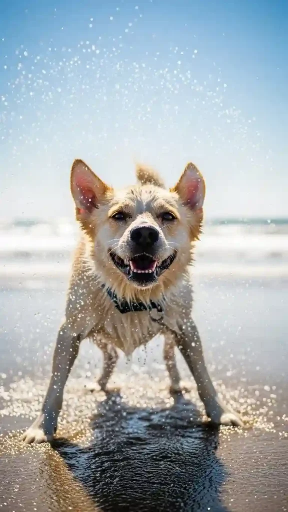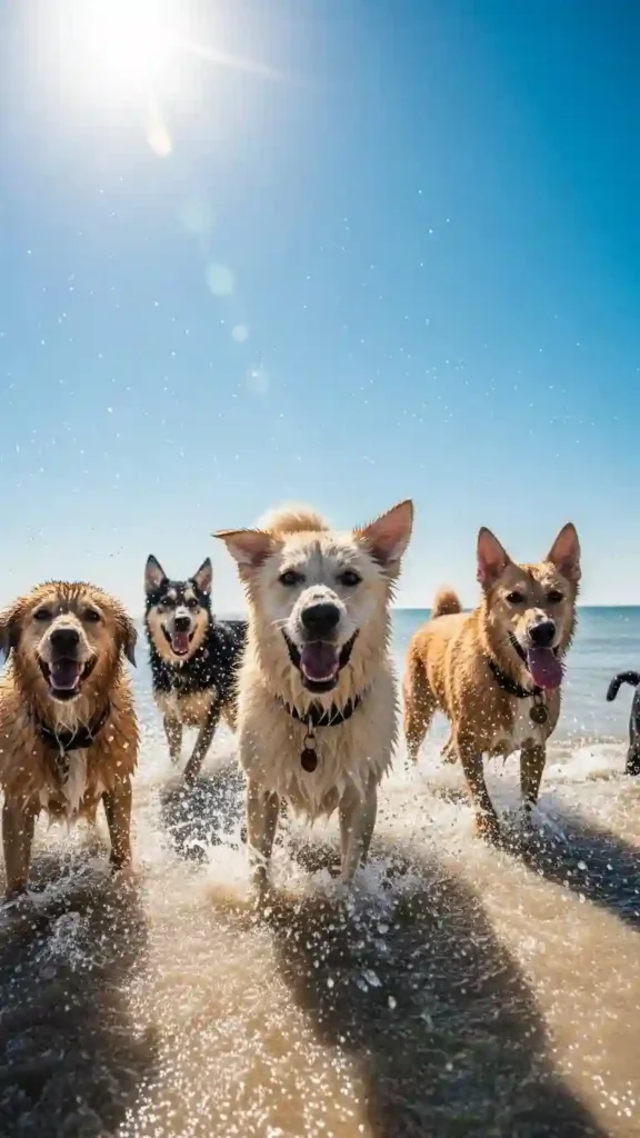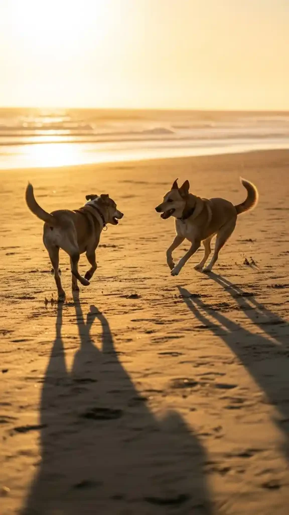 - Playful energy — sand and shore are novel play zones