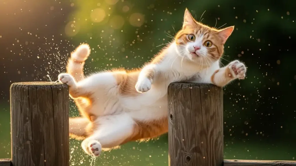 Even graceful cats sometimes miscalculate jumps, leading to funny slips or awkward landings. These moments are harmless and often followed by a cat acting as if nothing happened.