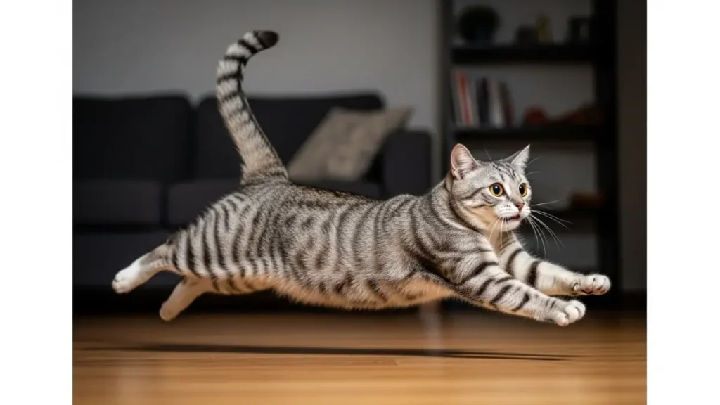 Zoomies are sudden bursts of energy where cats run wildly around the house. Sometimes, these moments end in funny crashes, sliding stops, or unexpected turns.
