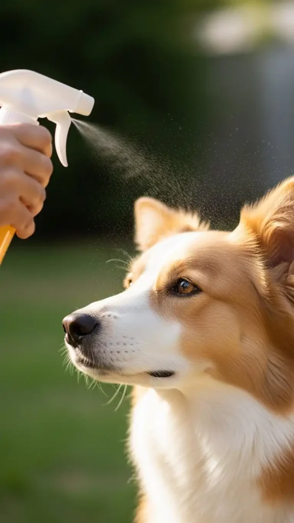 Diluted apple cider vinegar can help repel fleas. Mix equal parts vinegar and water in a spray bottle and lightly mist the dog’s coat, avoiding eyes and sensitive areas. It creates an environment fleas dislike without harmful chemicals.