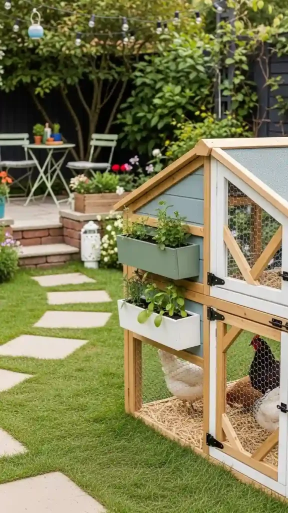 10. Modern DIY Chicken Pen With Decorative Touches