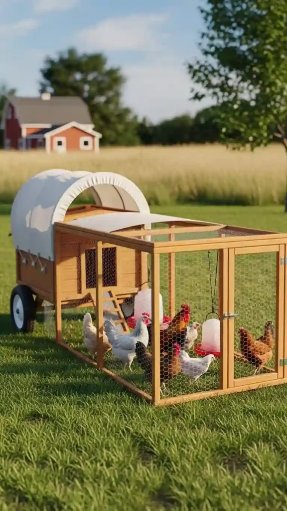Turn a sturdy utility wagon into a portable chicken pen. This setup is perfect for small flocks and urban backyards where space changes frequently.