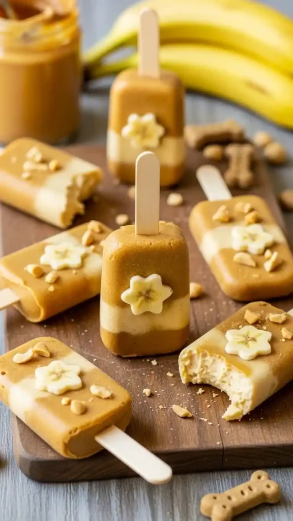 Peanut butter and banana pops are a classic frozen treat dogs adore. Blend ripe bananas with unsweetened peanut butter, pour into silicone molds, and freeze until solid. These pops are nutrient-rich, provide energy, and keep dogs hydrated during warm days. Dogs love the creamy texture and natural sweetness, making it an instant hit for hot summer afternoons.