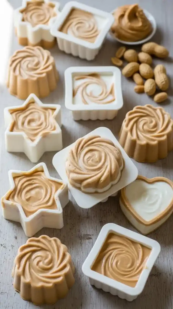 Peanut butter and yogurt swirls are a visually appealing and delicious treat. Layer plain yogurt and dog-safe peanut butter in molds, gently swirl with a toothpick, and freeze. This combination gives a creamy texture and indulgent taste without added sugar.
