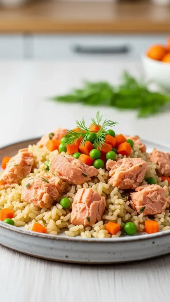 Salmon and brown rice meals are excellent for coat and skin health. Salmon provides omega-3 fatty acids, while brown rice offers slow-release energy. Adding cooked zucchini or carrots increases nutritional value without added cost.