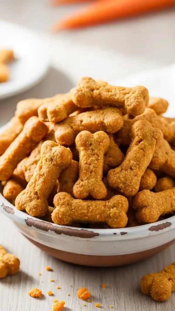 Carrot crunch treats are light, healthy, and extremely economical. Carrots are inexpensive and packed with vitamins that support eye and dental health. Grated carrots mixed with flour and water form a simple dough that can be baked into crunchy treats. Dogs enjoy the natural sweetness and texture.