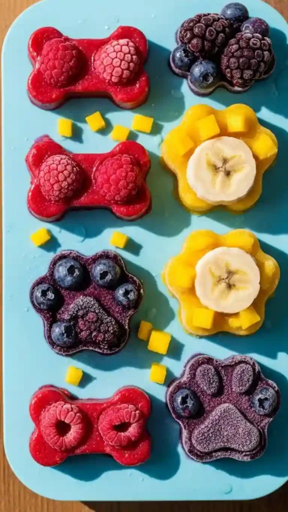 Frozen fruit cubes are simple and refreshing. Blending dog-safe fruits like watermelon or blueberries with water and freezing them creates hydrating treats at almost no cost. These treats are especially useful in warm weather.