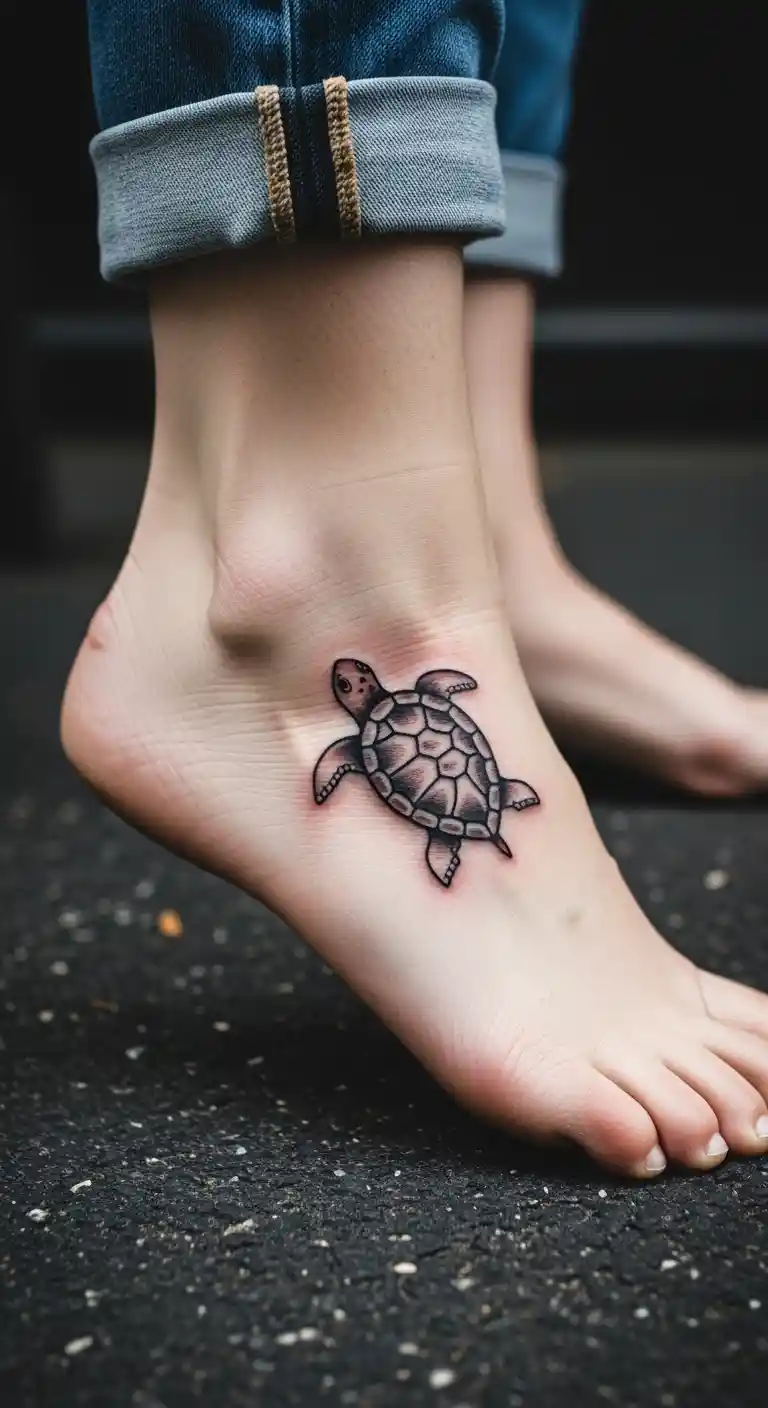 A tiny turtle on the ankle gives a subtle and stylish touch. Keep the design clean and simple.