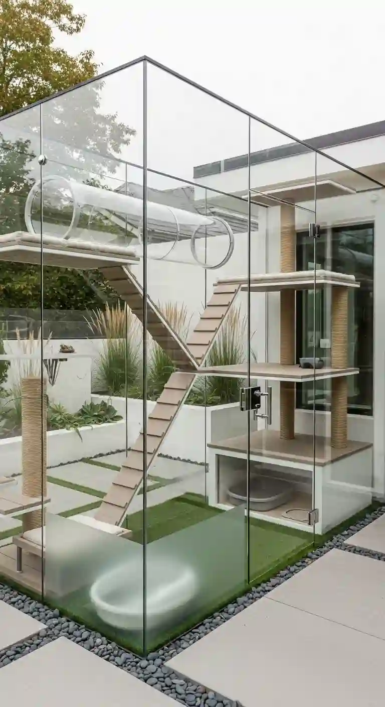 Use transparent panels to create a modern and open look. Your cat can enjoy the view while staying protected.