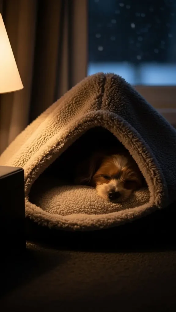Cave or hooded beds have a built-in “roof” that provides shelter-like warmth. Dogs instinctively burrow, and this design encourages that behavior while trapping heat inside.