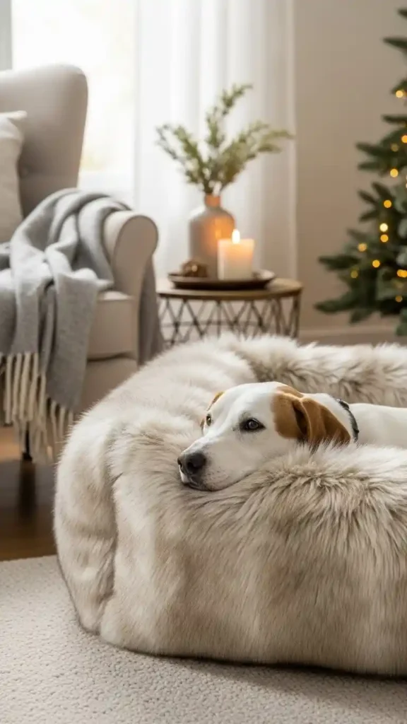 Dogs love softness — and faux fur is one of the comfiest textures for a winter bed. Bolster beds with raised sides and ultra-soft faux fur interiors are both stylish and snuggly.