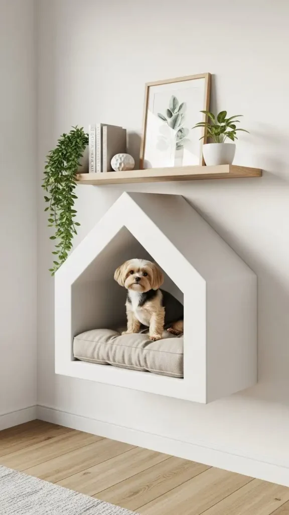 10. Floating Shelf Nook (for Small Dogs)