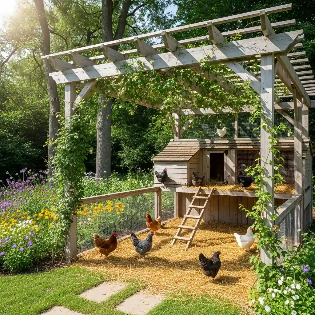 9. Pergola-Style Coop That Feels Open and Styled