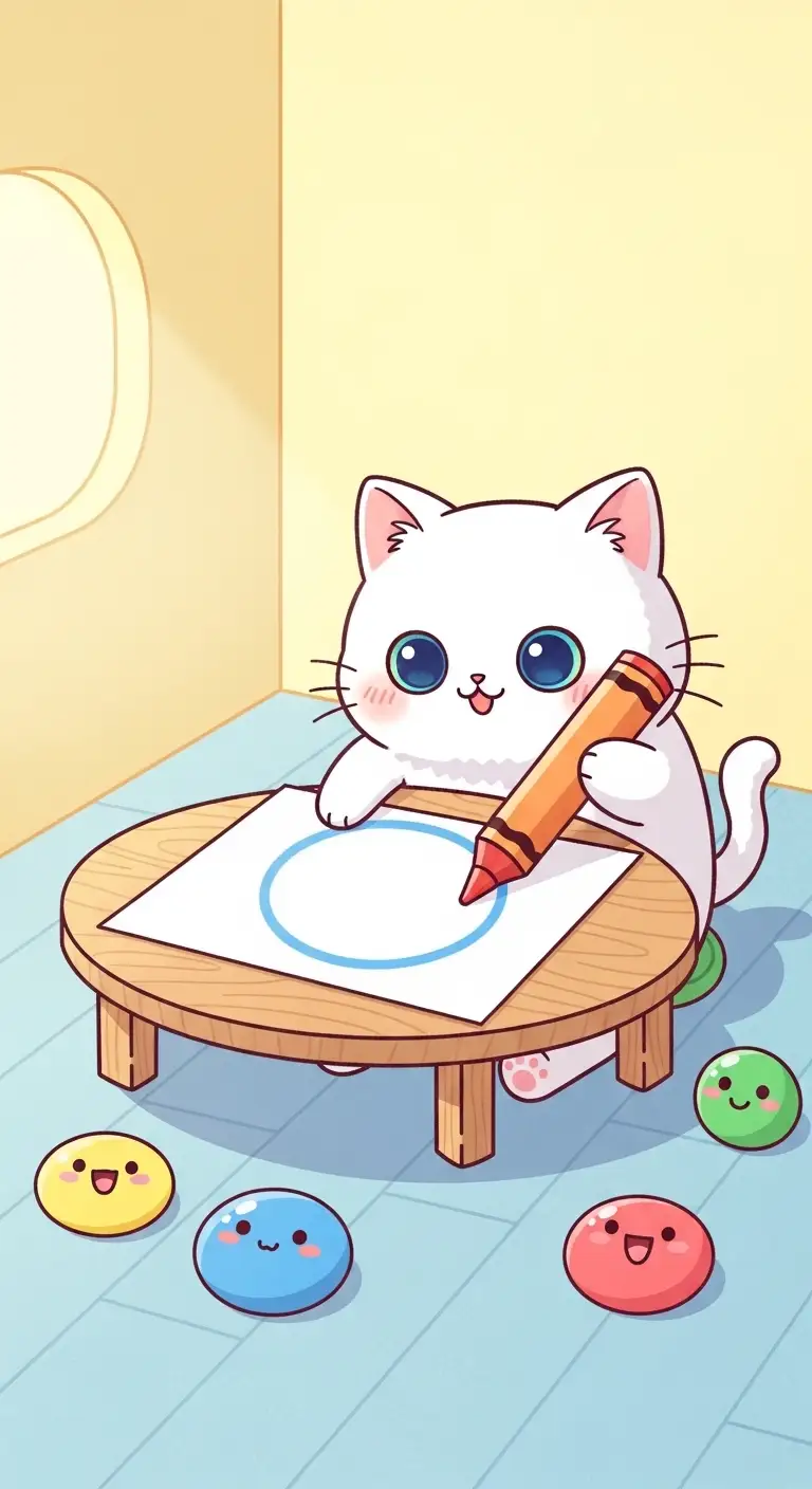 Draw a kawaii-style cat with a tiny body and simple face. This style is very popular and easy to follow.