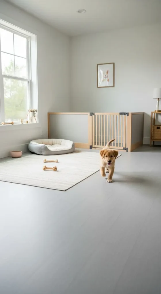 Choosing durable, easy-to-clean flooring is essential for any puppy room. Accidents happen, and having water-resistant surfaces makes cleanup quick and stress-free.