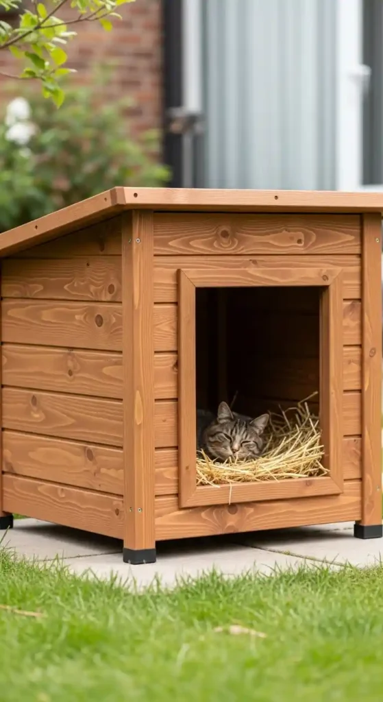 Cabin-style cat houses combine charm with durability. Sloped roofs help shed rain and snow efficiently.