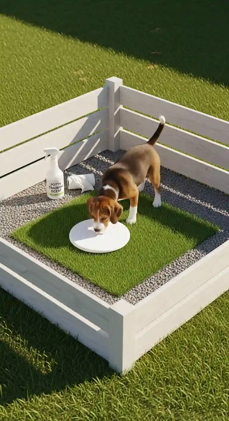 Use a small corner of your yard for a dedicated potty space. Keep it simple and clearly defined.