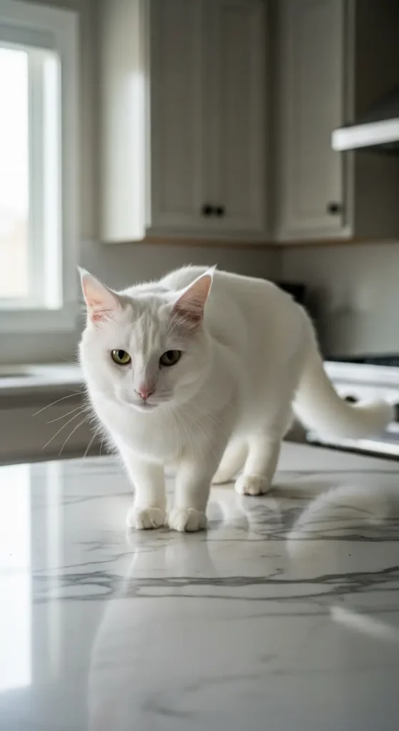 One second the kitchen is spotless—next second, this sneaky cat has jumped onto the counter without making a sound.
