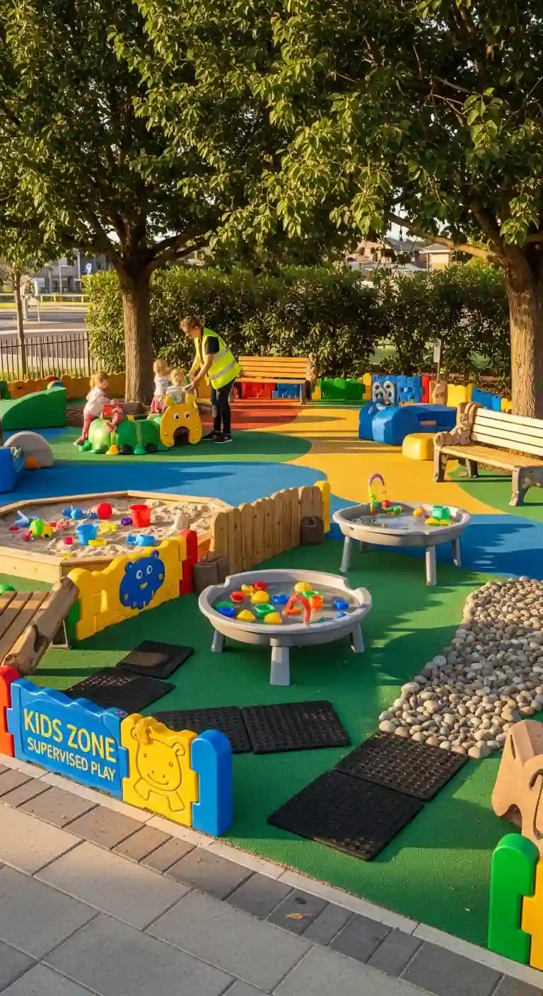Create areas where kids can safely interact with animals. Use barriers, benches, and supervised play zones to keep everyone safe.