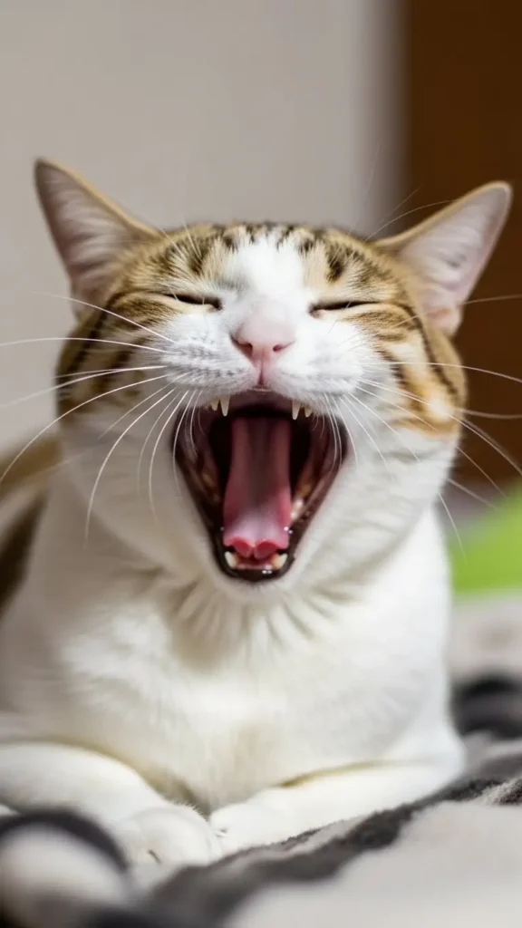 Caught mid-yawn, a cat’s face can look incredibly exaggerated—mouth wide open, eyes half-closed, and tongue flopped out. It’s the perfect snapshot of chaotic hilarity.