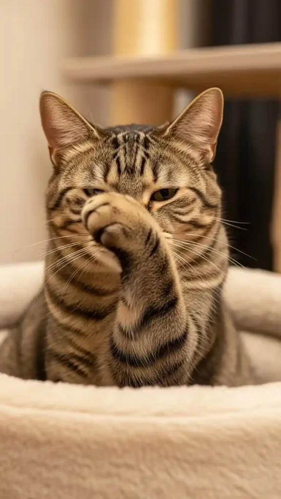 This playful gesture makes it look like your cat is hiding in embarrassment—or maybe just being dramatic. Either way, it’s an adorable and funny moment you won’t forget.