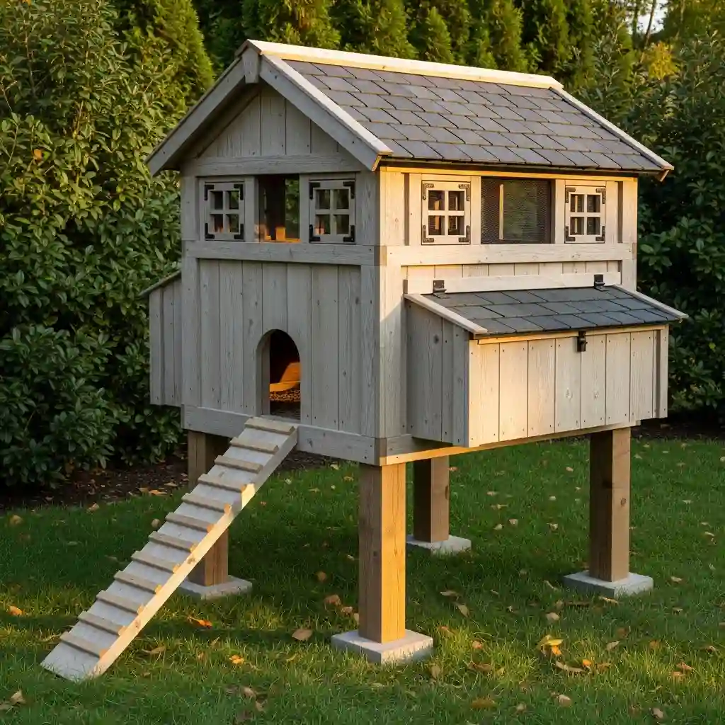 A clean wooden coop with natural tones feels like part of the environment instead of something added later. It doesn’t try too hard, which is what makes it look good.