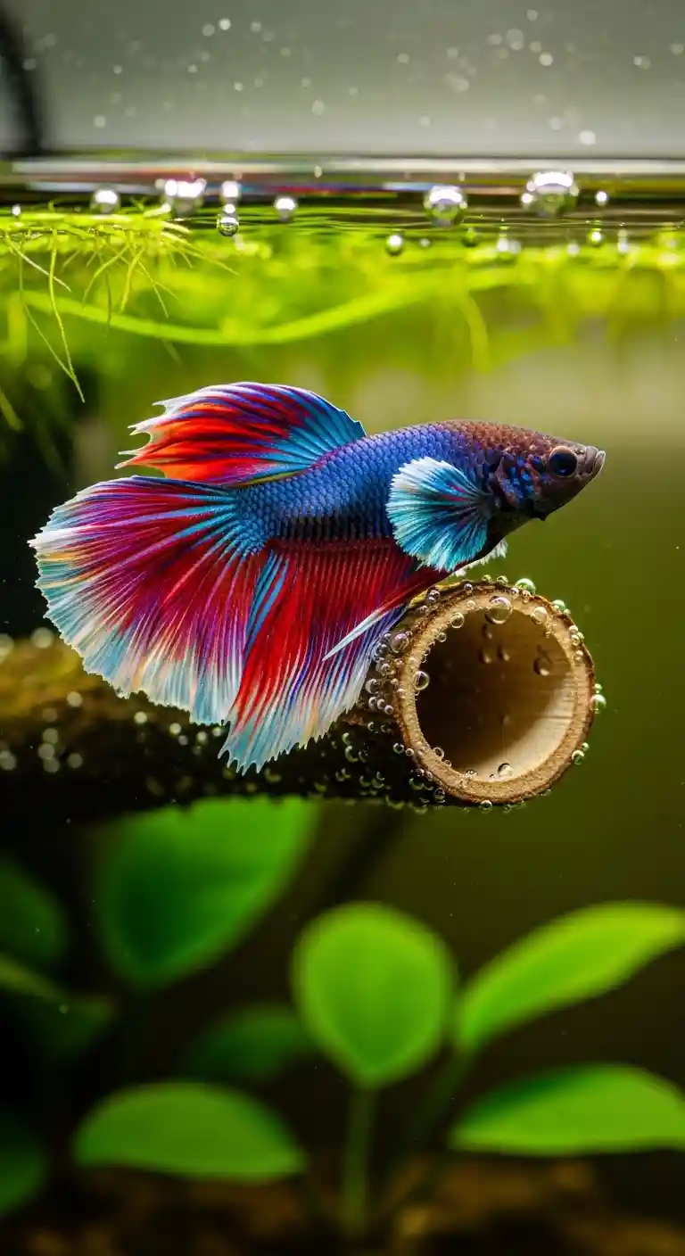 Add a floating log or platform where your betta can rest near the surface.
